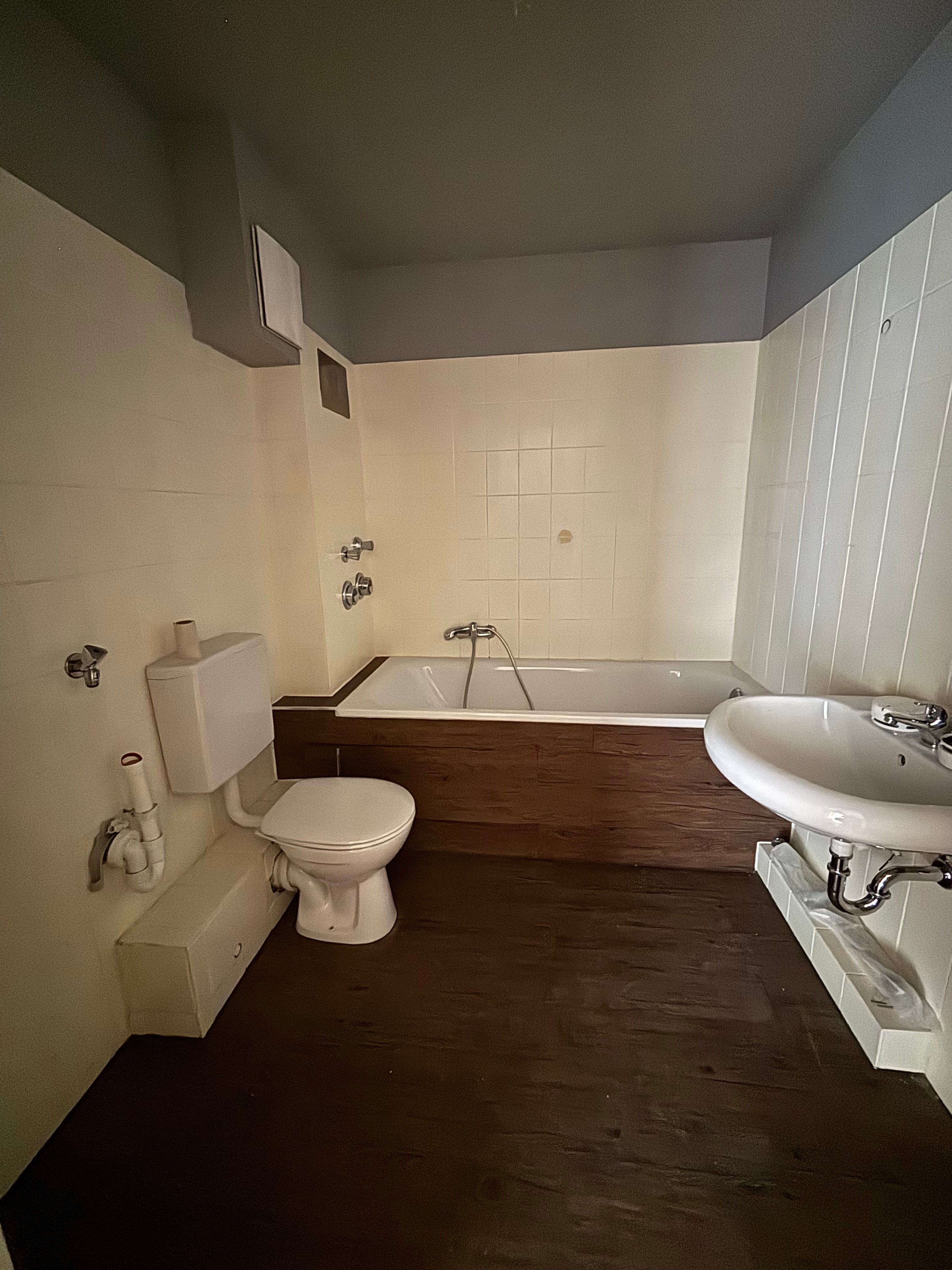 Beim Betreten der Wohnung fällt sofort der offene und helle Wohn- und Essbereich auf, der viel Platz für gemütliche Stunden bietet. Die große Fensterfront sorgt für eine gute Belichtung und eine angenehme Atmosphäre. Die separate Küche bietet genügend Stauraum. Das Schlafzimmer befindet sich offen in der oberen Ebene und überzeugt mit ausreichend Platz für ein großes Bett und einen Kleiderschrank. Ein WC befindet sich praktischerweise ebenfalls in der oberen Etage. Das Badezimmer in der unteren Etage verfügt über eine Badewanne.