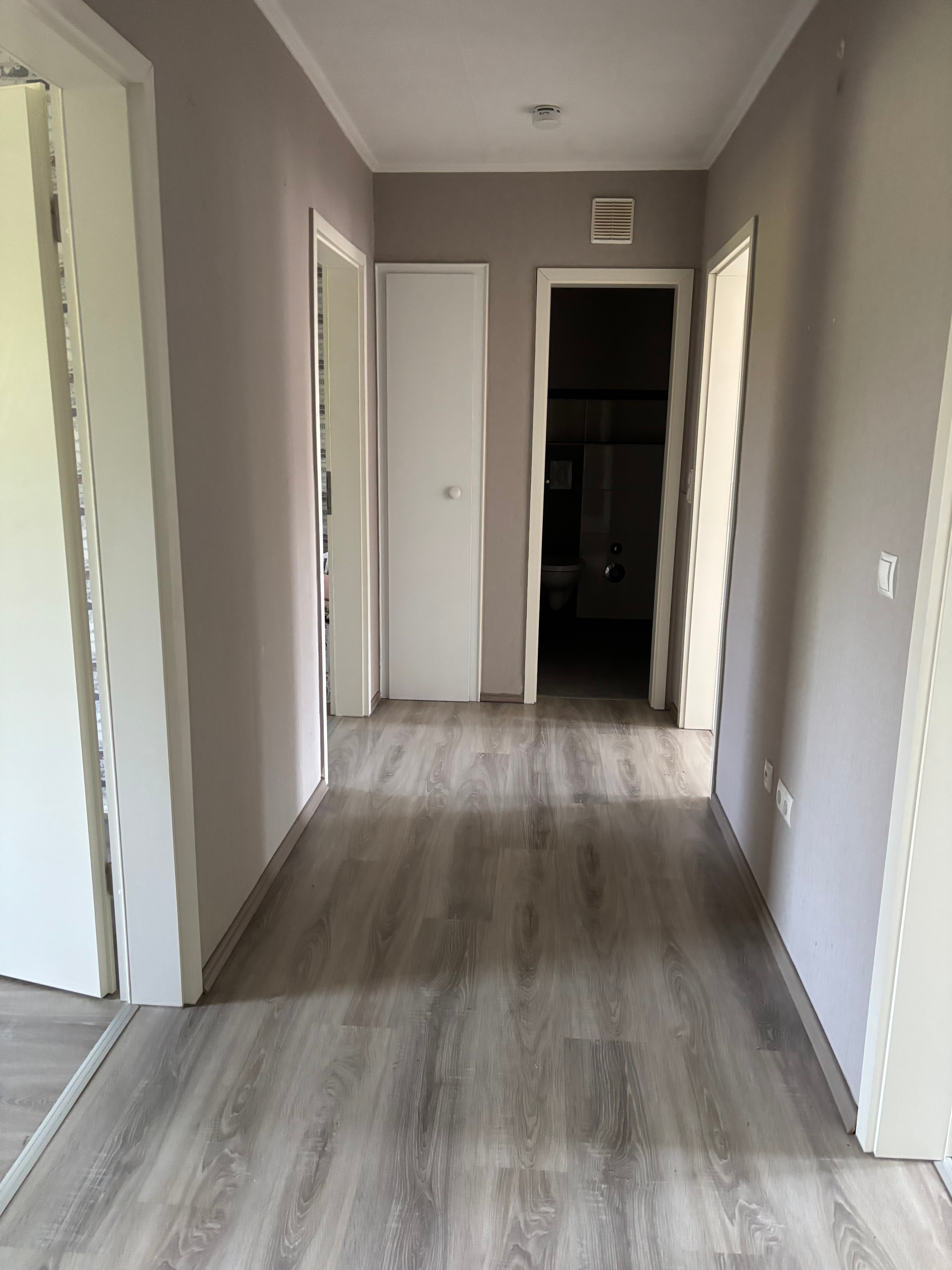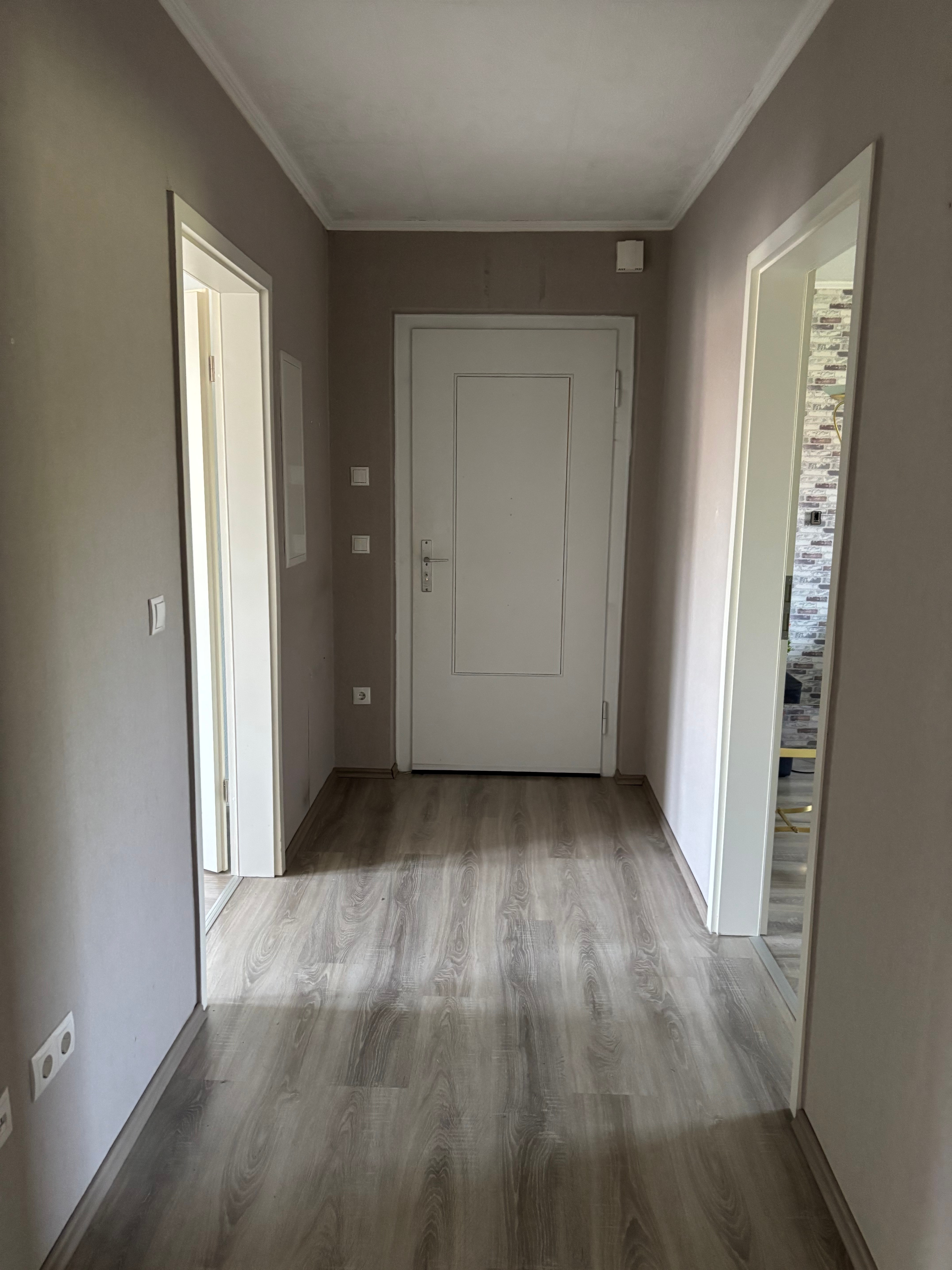 Beim Betreten der Wohnung gelangt man zunächst in den Flur, von dem aus man Zugang zu allen weiteren Räumen hat. Das Wohnzimmer beeindruckt mit seinem großzügigen Platzangebot und den großen Fenstern, die für eine angenehme Helligkeit sorgen. Die Küche ist separat, verfügt über sowas wie ein Vorzimmer, welches als Esszimmer genutzt werden kann, aber trotzdem offen zur Küche ist. Das Schlafzimmer bietet genug Platz für ein großes Bett und einen Kleiderschrank. Das Badezimmer ist mit einer Dusche ausgestattet. Das zweite Schlafzimmer dient als Kinderzimmer, Gästezimmer, Ankleide oder Büro.