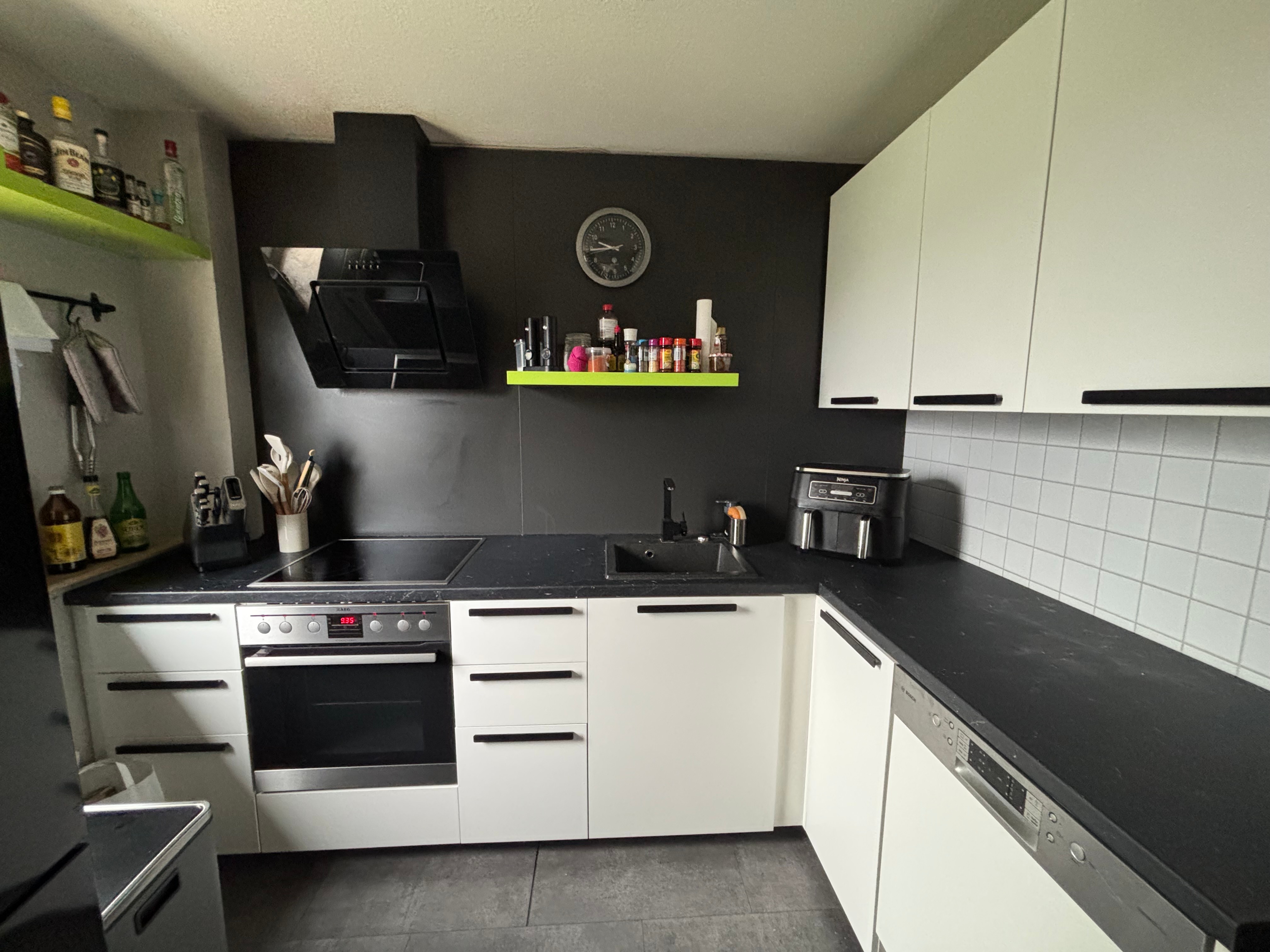 Beim Betreten der Wohnung gelangt man in den offenen Wohn- und Essbereich, der durch bodentiefe Fenster besonders hell und einladend wirkt. Die angrenzende Küche ist mit modernen Einbaugeräten ausgestattet, welche vom Vormieter gegen eine Abstandssumme übernommen werden kann und bietet genügend Stauraum. Über eine Treppe gelangt man in das obere Stockwerk, wo sich das geräumige Schlafzimmer sowie das Ankleidezimmer befinden. Das Badezimmer liegt auf der ersten Etage, ist innenliegend mit Dusche.